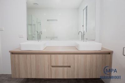The home includes three spacious bedrooms, with two featuring built-in wardrobes. The main bedroom is a private retreat, complete with a walk-in robe and a luxurious ensuite featuring a bathtub and a double vanity – perfect for pampering yourself at home. The main bathroom has been thoughtfully designed, offering a large shower and a double vanity, providing space and convenience for family living. Ceiling fans are installed throughout, while ducted reverse-cycle heating and cooling ensures comfort in every season.